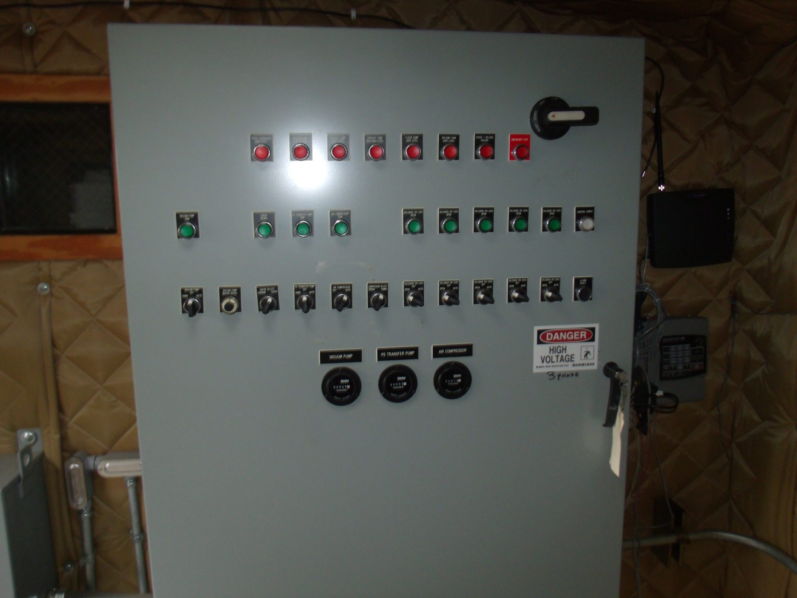 - Knockout tank – Bisco 100 gal. with Innovative Solutions L500 level switches and sight glass