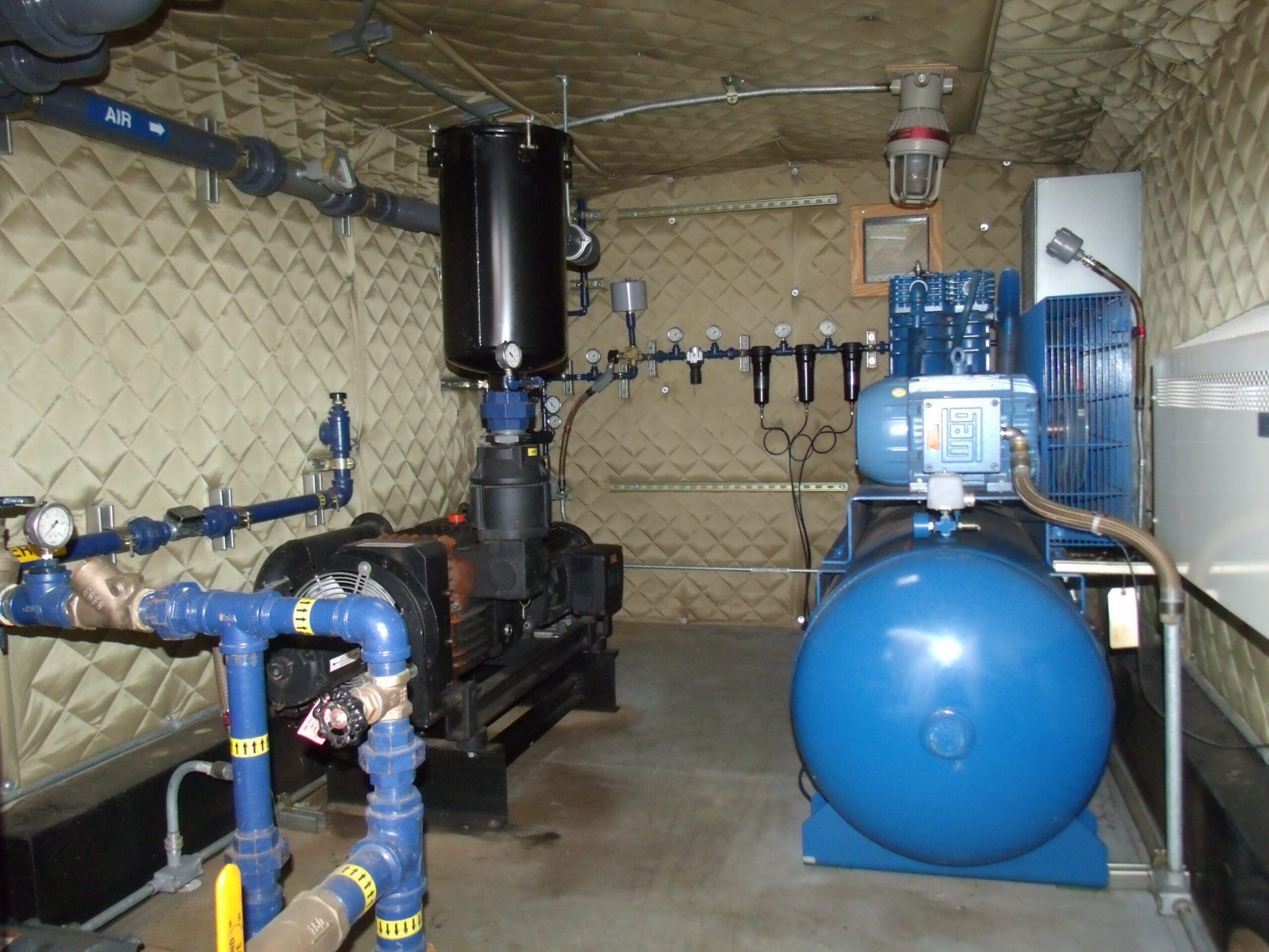- Three Stage Coalescing Filter with Pressure gauges/controls, solenoid controlled bleed with canister filtration.